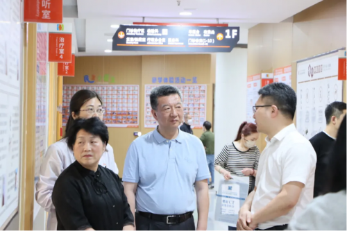 王再可一行首先由医院领导带领,参观了医院主要功能区域,包括门诊大厅、专业诊室、电子鼻咽喉镜室以及中西医结合治疗区。医院副院长陈前进针对耳鼻喉专科的特点,详细介绍了核心诊疗技术及服务模式,展示了医院在专科治疗领域的专业深度与创新成果。医院的诊疗环境与周到的服务流程给来访团队留下了极其良好的印象。